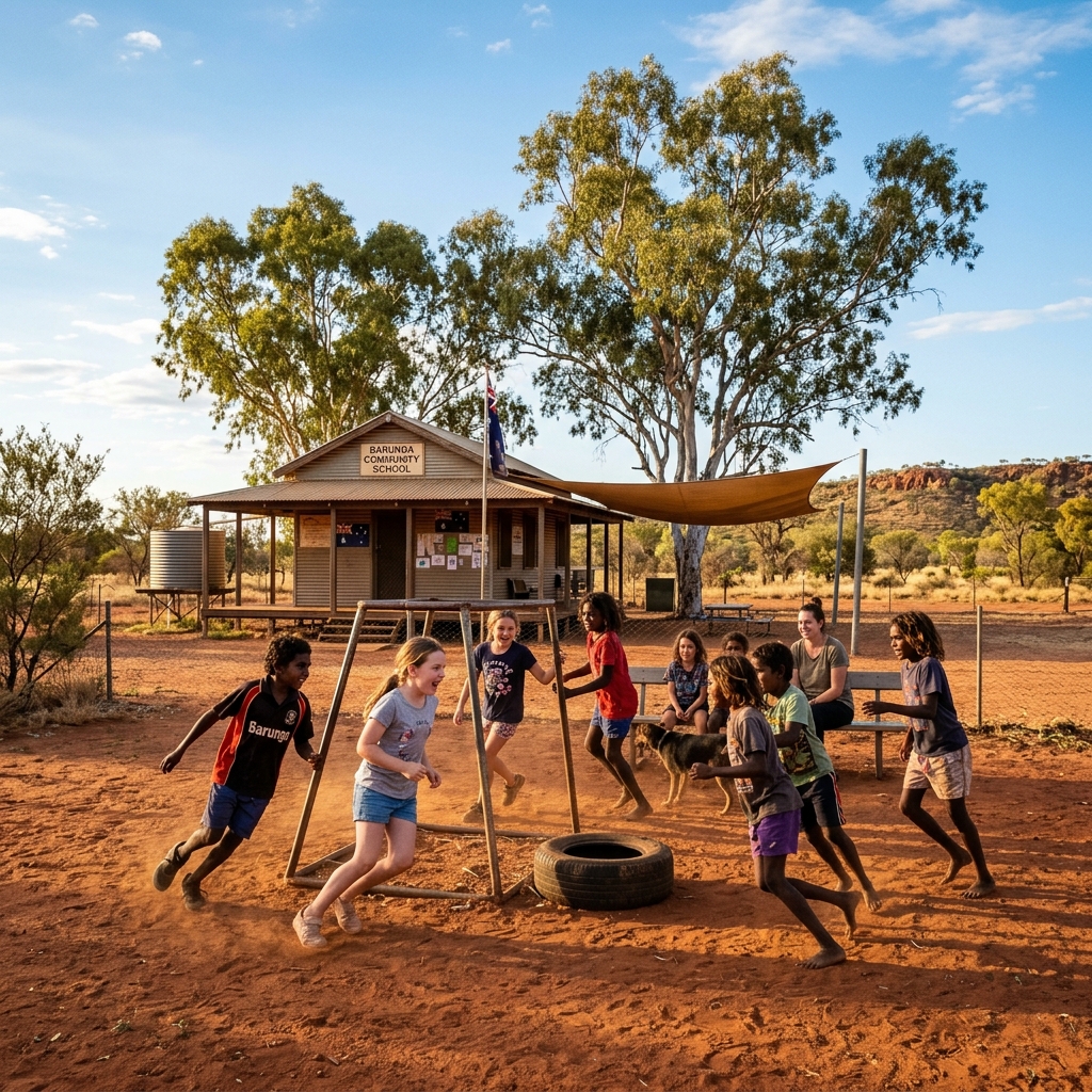 Small community schools: Many remote communities have a single school serving Prep through Year 6 or Year 10, with 20–80 students across multiple year levels. Multi-grade classrooms — one teacher, three year levels — are standard. The research on small schools is actually reasonably positive about what they can offer: closer teacher-student relationships, a stronger whole-school community, and genuine individual attention. What they can't always offer is subject breadth or specialist teachers in art, music, languages, or sports.